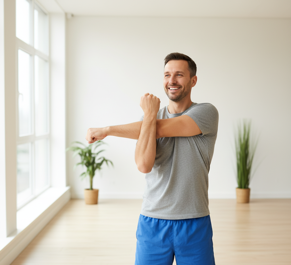 - Break up sitting time: Stand, stretch, or walk for a minute every 30–60 minutes to reduce stiffness.