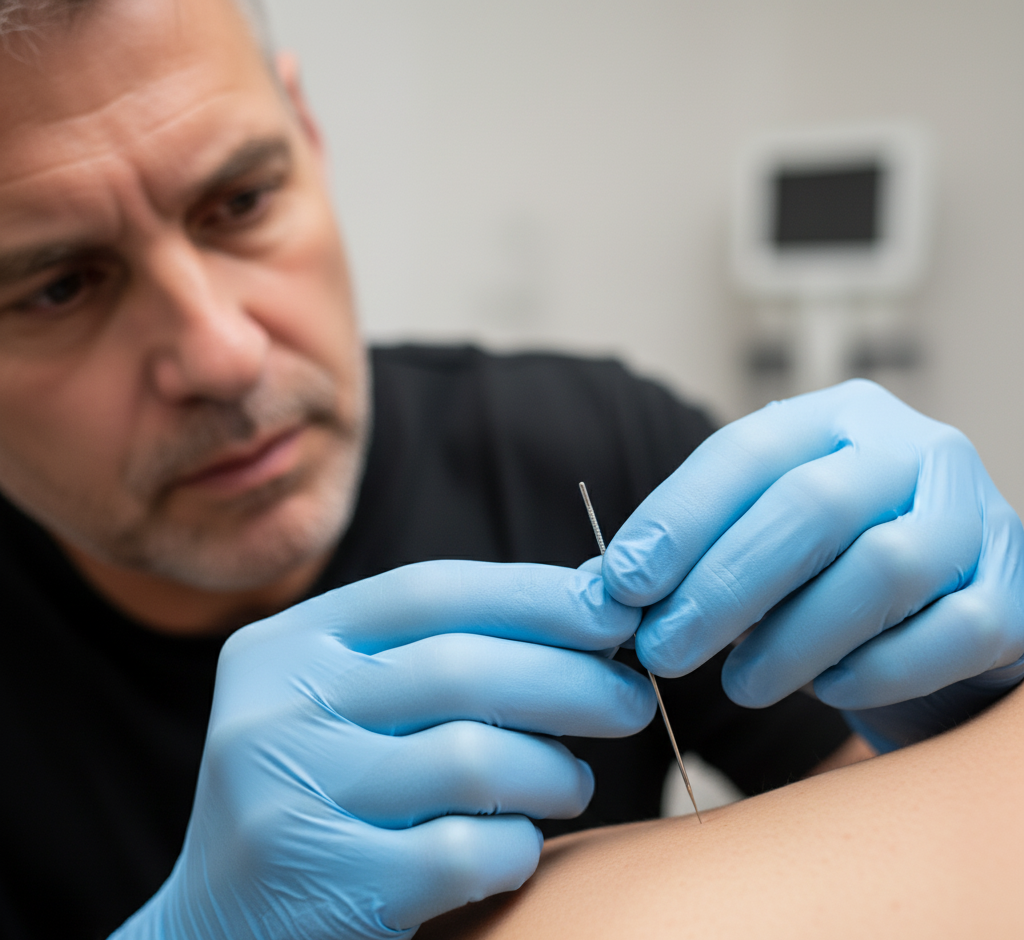 - Targeting the muscle: The clinician locates the trigger point and inserts the needle gently. You may feel a brief twitch or a heavy, achy sensation.